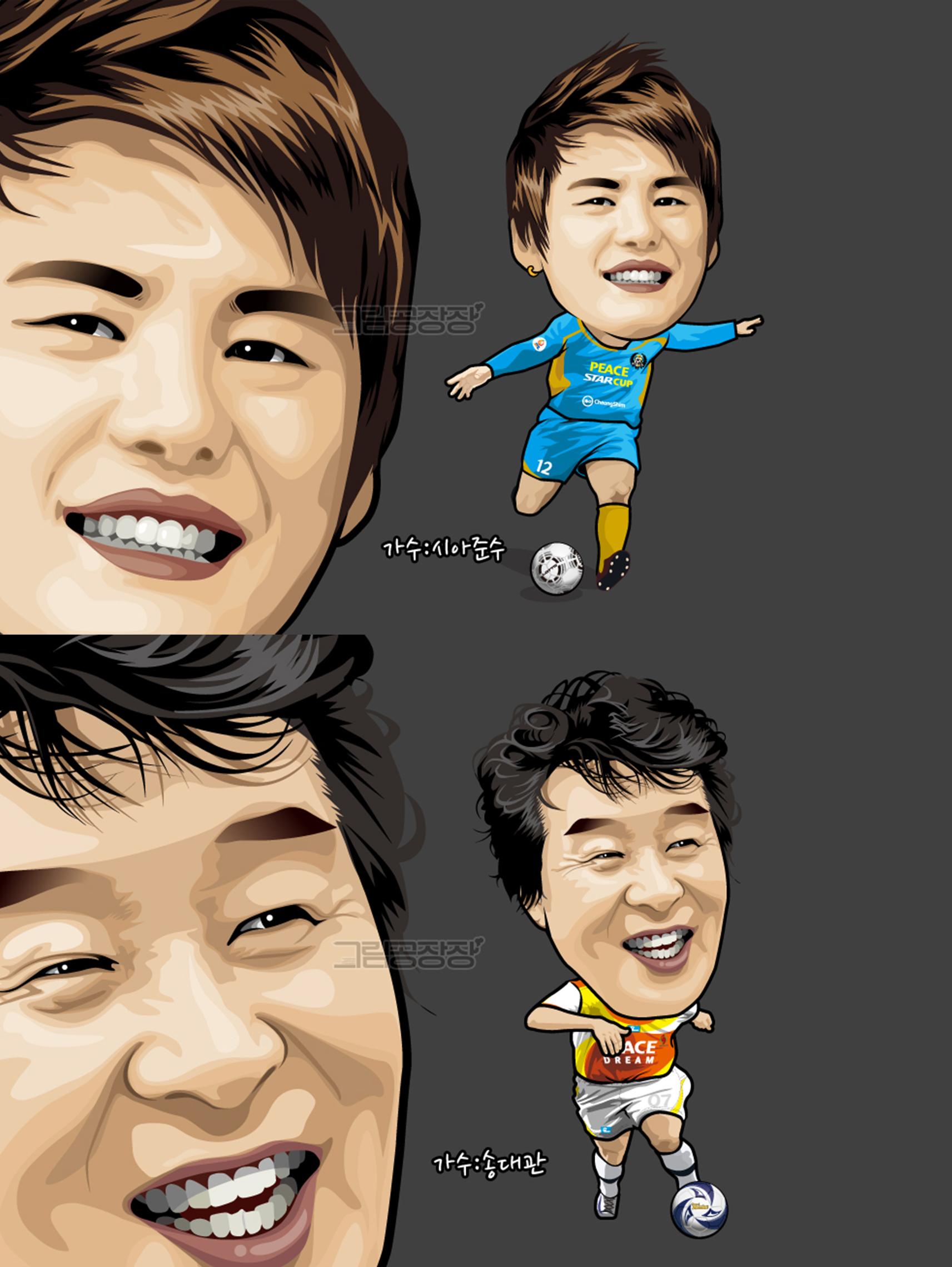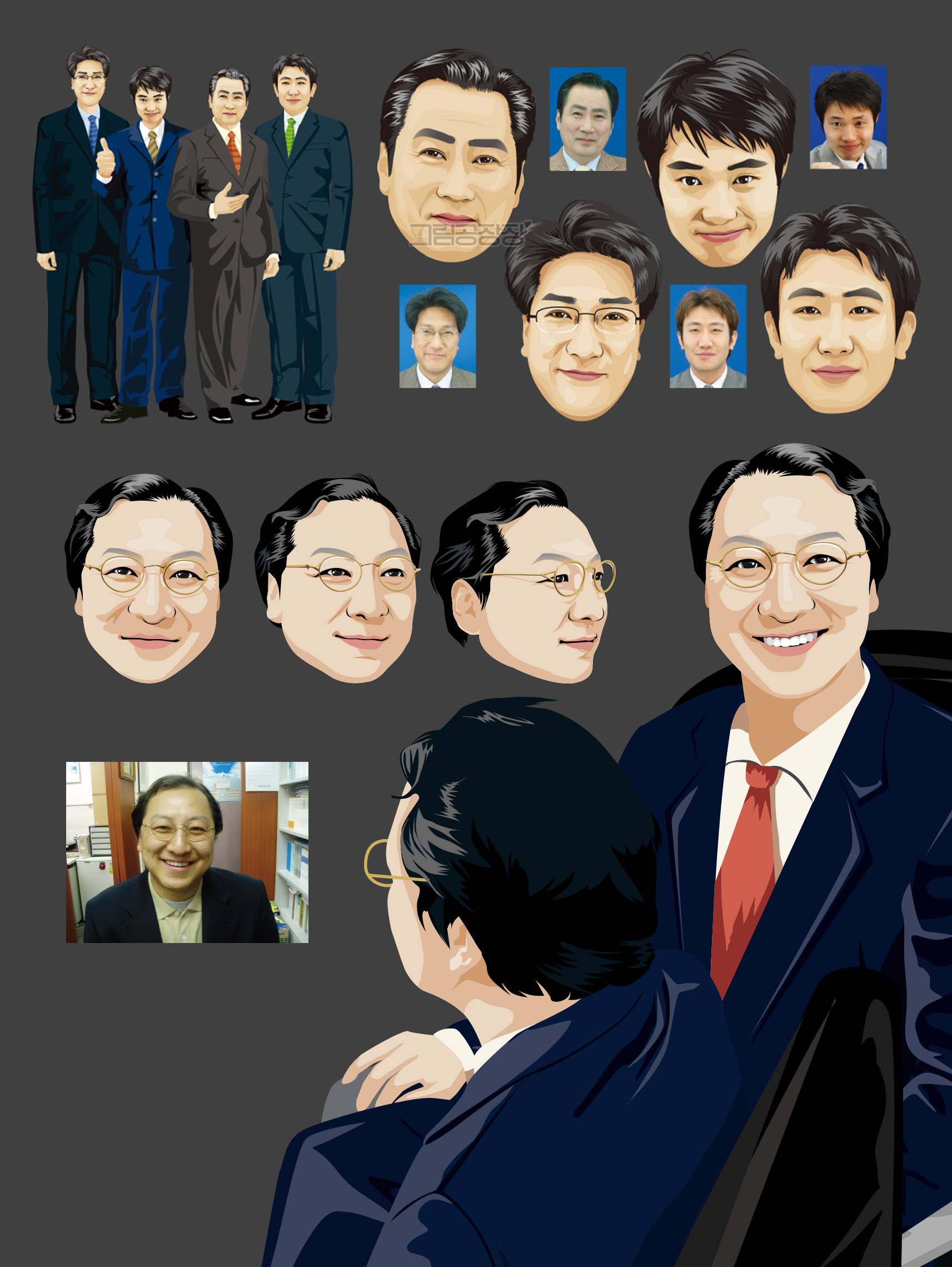 - 실제 인물의 대표 특징(눈, 표정, 헤어스타일 등)을 뚜렷하게 강조
